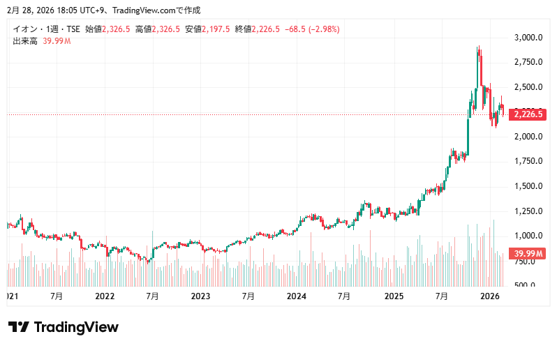 最新の株価参考:イオン(株)【8267】:Yahoo!ファイナンス