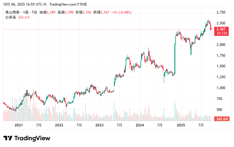 青山商事の株価情報と配当状況・株主優待を確認していきます。