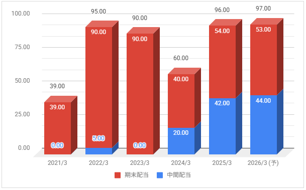 2026年3月期の予定年間配当:97円