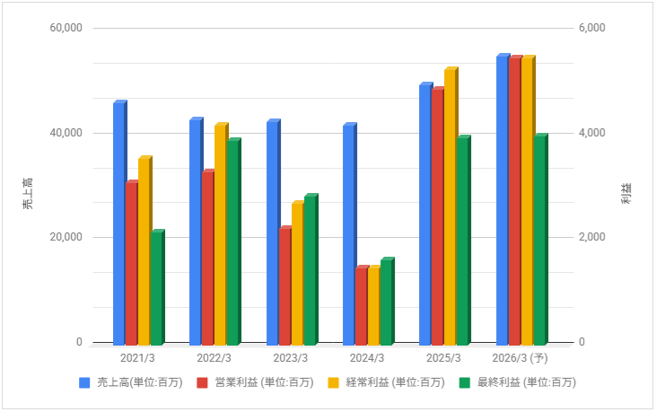 2023年3月期、2024年3月期は大きく減益となりましたが、2025年3月期は大きく増益に。