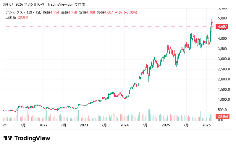 アシックスの業績推移と株価推移を確認していきます。
