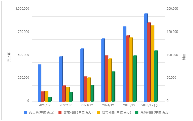 下記は売上高・営業利益・経常利益・最終利益の推移です。