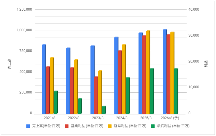 2025年8月期も増益、2026年8月期はほぼ横ばい見通しとしています。