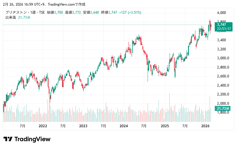 ブリヂストンの株価情報と配当状況・株主優待制度を確認していきます。