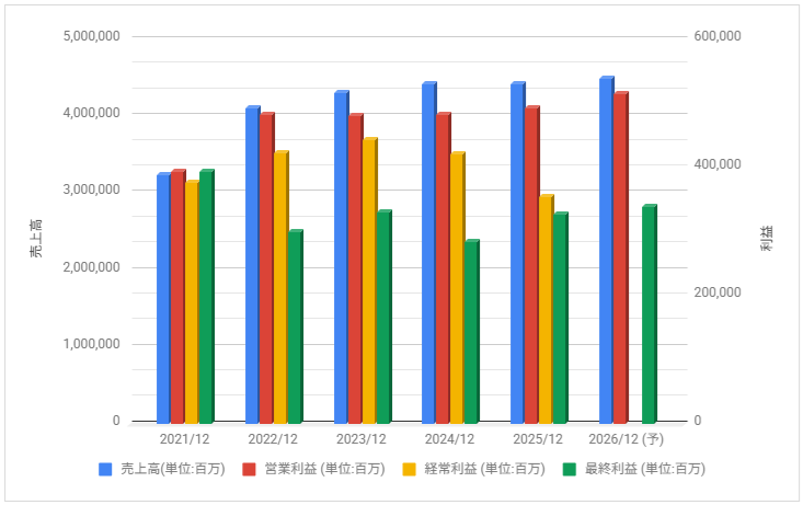 ブリヂストンの業績推移と株価推移を確認していきます。
