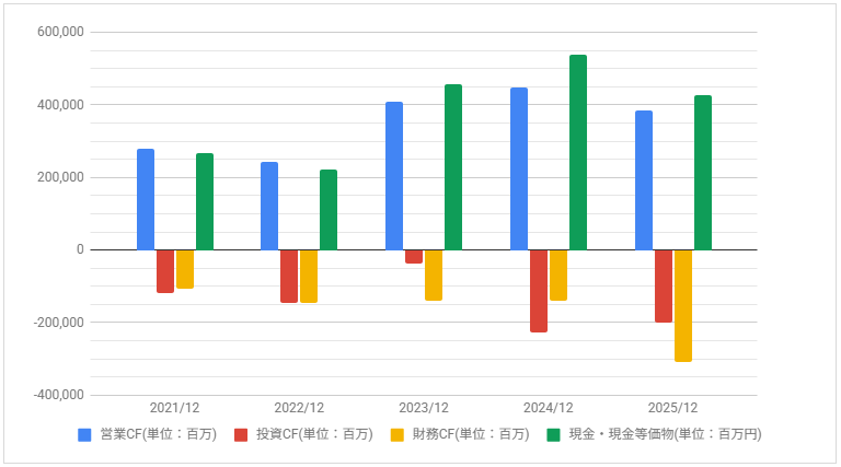 2023年12月期の営業CF増えており、それまでの推移も悪くないです。