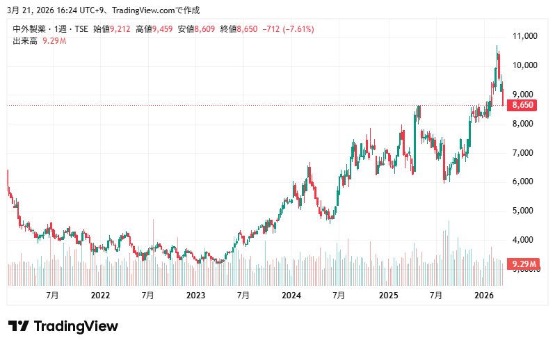 中外製薬の配当が増配推移・株価は大きく上昇大きく下落場面もあり【4519】