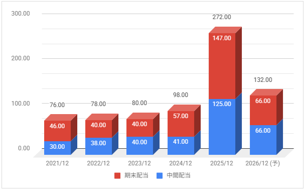 配当は増配推移、2025年12月期は大きく特別配当を実施しています。