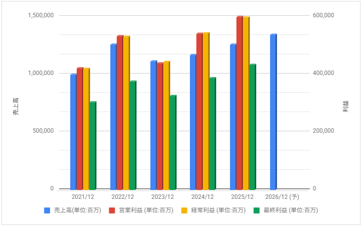 2023年12月期は減益となりましたが、2024年12月期、2025年12月期は増益となりました。