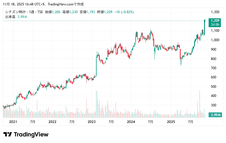シチズン時計の株価情報と配当状況・株主優待制度を確認していきます。