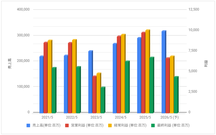 2023年5月期は大きく減益となりましたが2024年5月期は大きく回復。