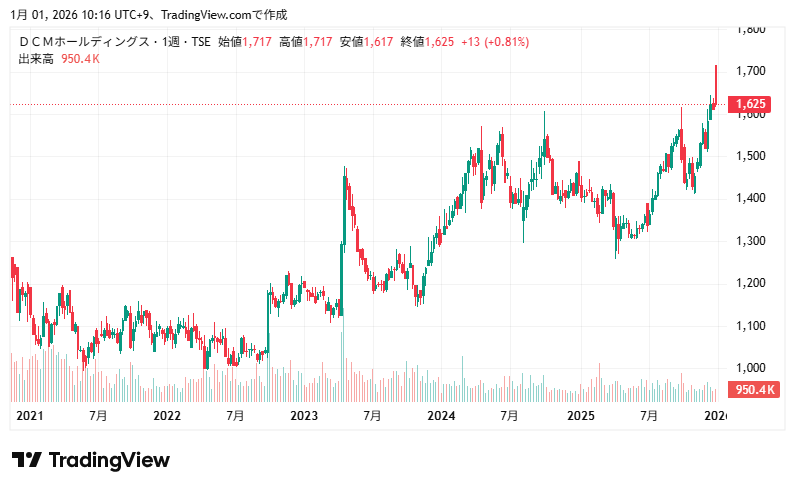 DCMホールディングスの業績推移と株価推移を確認していきます。