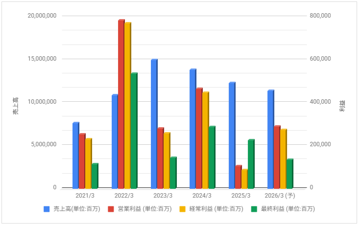 2025年3月期は大きく減益、2026年3月期は営業・経常増益、最終減益見通しとしています。