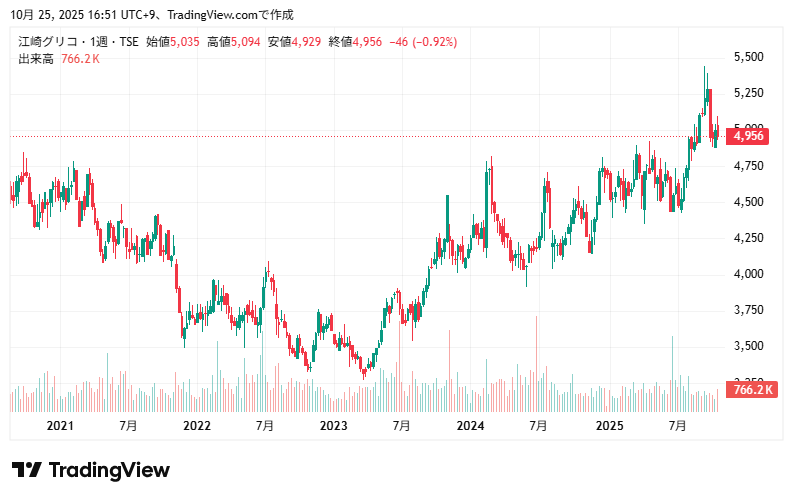 江崎グリコの株価情報と配当状況・株主優待制度を確認していきます。