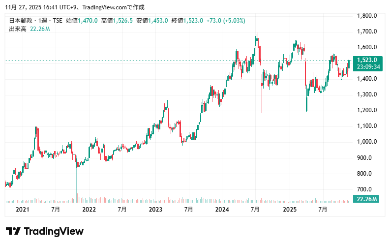 日本郵政の株価情報と配当状況・株主優待制度を確認していきます。