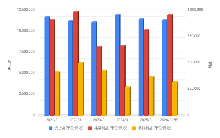2026年3月期の連結経常利益は9,600億円見通しとしています。