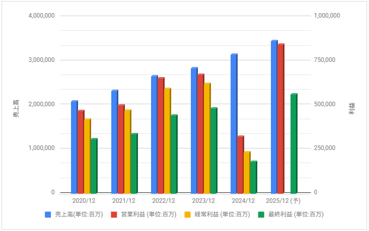 2025年12月期の連結営業利益は8,450億円見通しとしています。