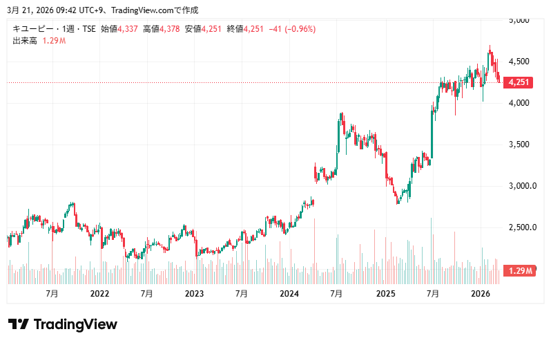 キユーピーの株価情報と配当状況・株主優待制度を確認していきます。