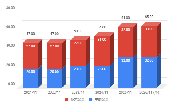 2026年11月期の予定年間配当:65円