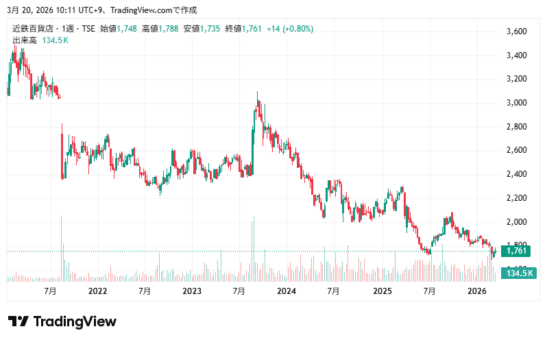 最新の株価参考:(株)近鉄百貨店【8244】:Yahoo!ファイナンス