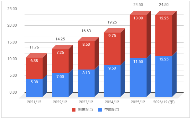 配当は増配推移、2026年12月期は据え置き予定としています。