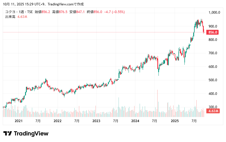 事務用品最大手のコクヨ(7984)、株主優待制度は自社製品を実施しています。株主優待に加え、配当状況・業績推移・株価推移を確認していきます。