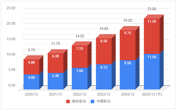 配当は増配傾向で推移、2025年12月期も増配予定としています。