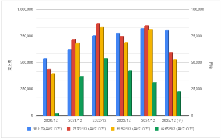 2025年12月期の連結経常利益は530億円見通しとしています。