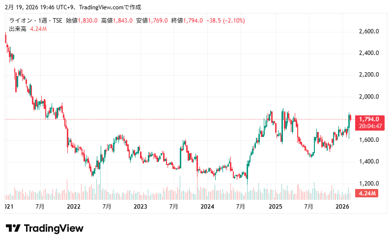 ライオンの業績推移と株価推移を確認していきます。