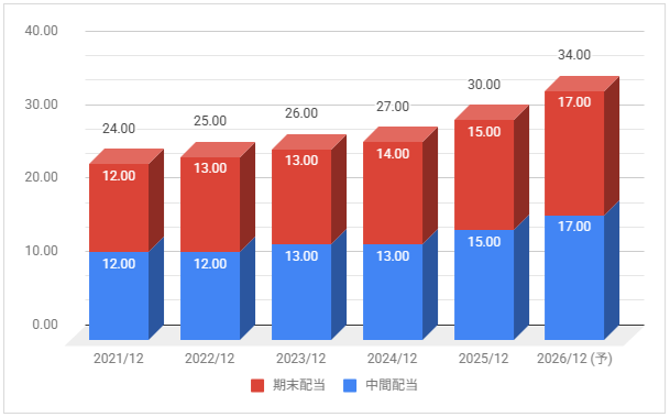 配当金は毎年増配しています。2026年12月期も増配予定としています。