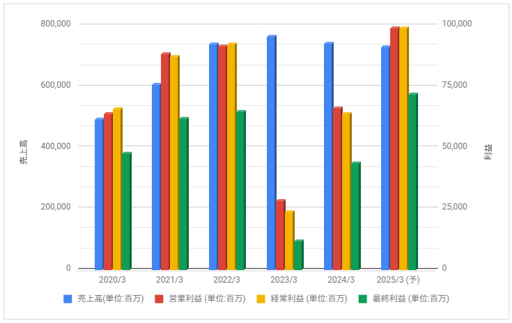 2022年3月期は増収・増益で過去最高益を更新も、2023年3月期は大きく減益。2024年3月期は回復、2025年3月期は大きく増益に。