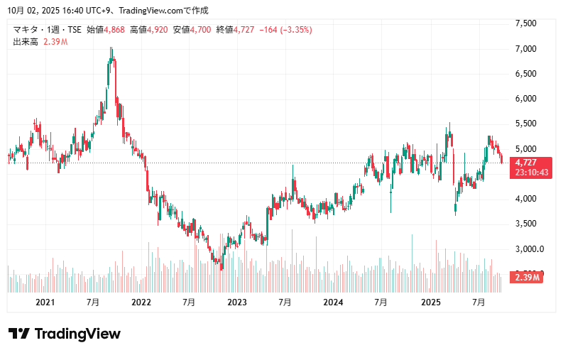 最新の株価参考:(株)マキタ【6586】:Yahoo!ファイナンス