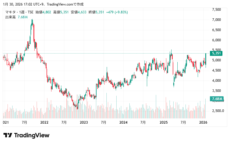 最新の株価参考:(株)マキタ【6586】:Yahoo!ファイナンス