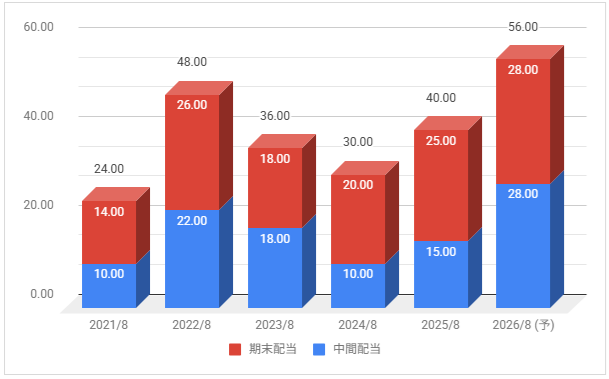 2026年8月期の予定年間配当:56円
