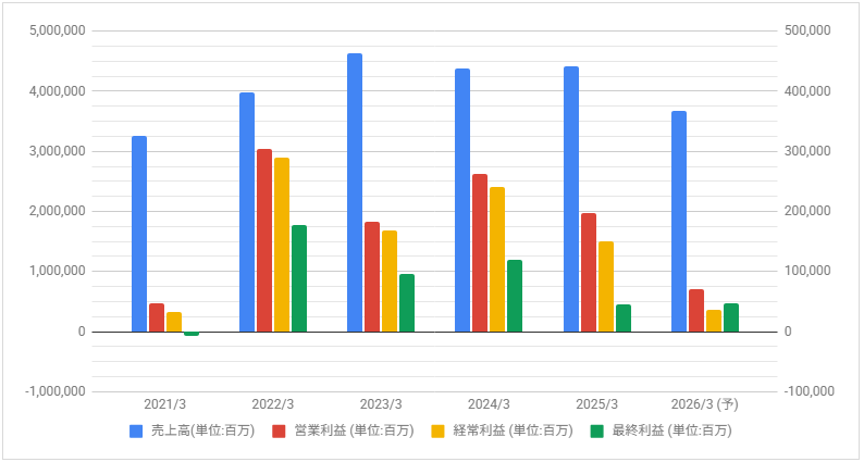 三菱ケミカルグループの業績推移と株価推移を確認していきます。