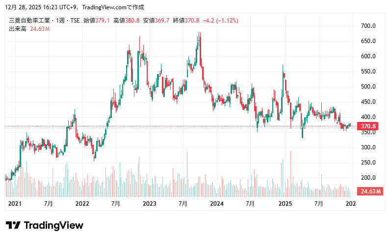 三菱自動車工業の株価情報と業績推移・株価チャートを確認していきます。