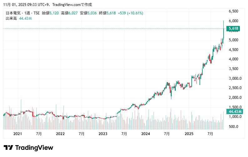 NEC(日本電気)の配当が連続増配・株価は大きく上昇推移【6701】