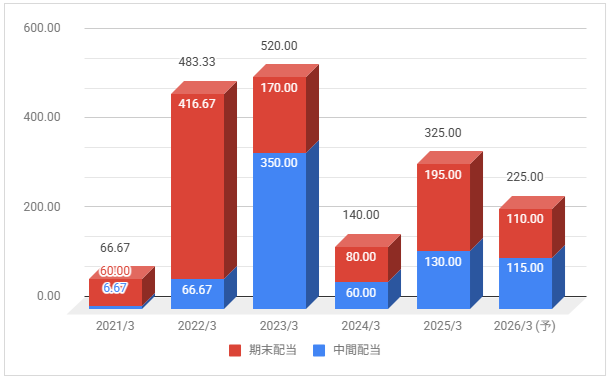 2026年3月期の予定年間配当:225円