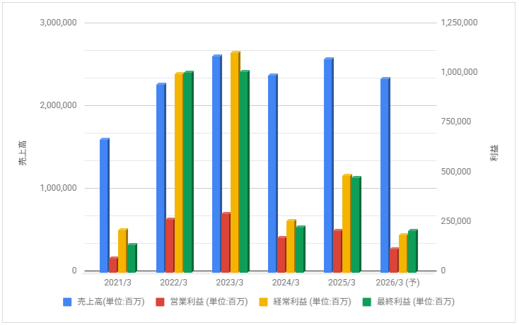 2025年3月期は増益も2026年3月期は減益見通しとしています。
