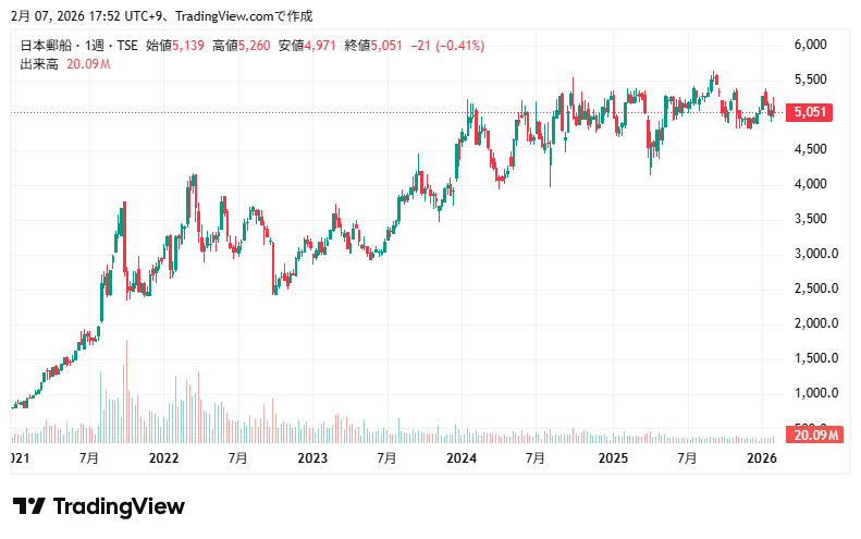 海運売上高国内トップの日本郵船(9101)、配当は業績連動ですが高い利回りです。株価指標と業績推移、配当推移と株価チャートを確認していきます。