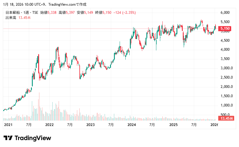 海運売上高国内トップの日本郵船(9101)、配当は業績連動ですが高い利回りです。株価指標と業績推移、配当推移と株価チャートを確認していきます。