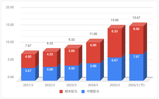 配当は連続増配当で推移、2026年3月期も増配予定としています。
