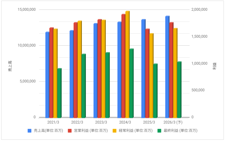 売上・利益ともに順調に伸びて過去最高を更新、2024年3月期も増益でしたが2025年3月期は減益に。