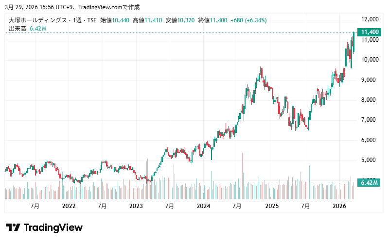 大塚ホールディングスの業績推移と株価推移を確認していきます。