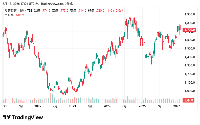 最新の株価参考:参天製薬(株)【4536】:Yahoo!ファイナンス
