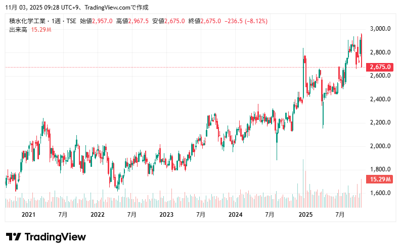 積水化学工業の株価情報と配当状況・株主優待制度を確認していきます。