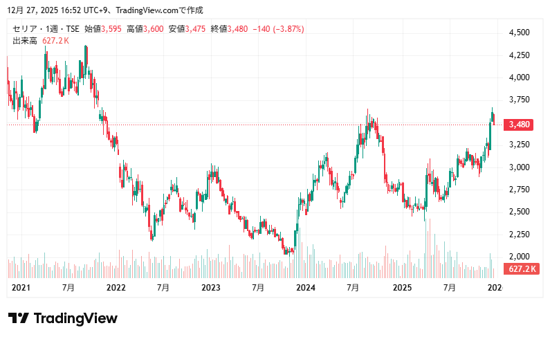 最新の株価参考:(株)セリア【2782】:Yahoo!ファイナンス