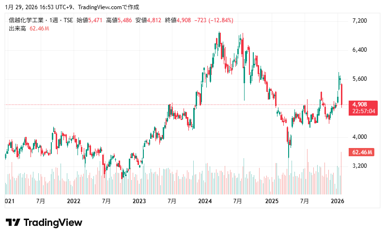 最新の株価参考:信越化学工業(株)【4063】:Yahoo!ファイナンス