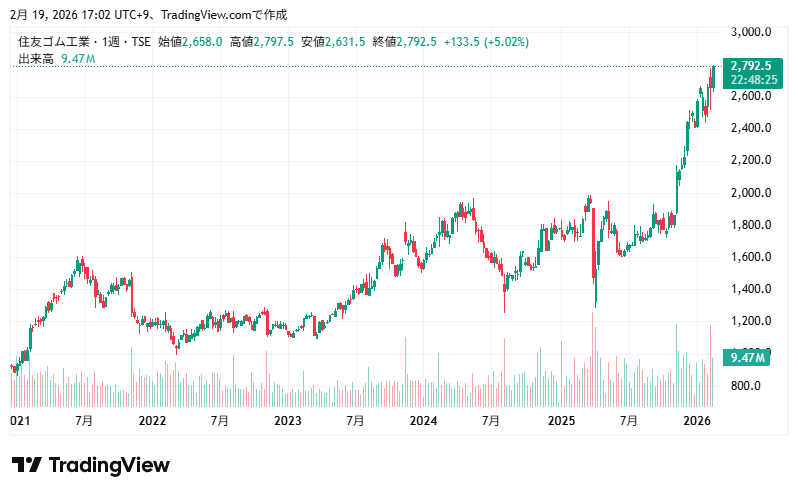 住友ゴム工業の株価情報と配当状況・株主優待制度を確認していきます。