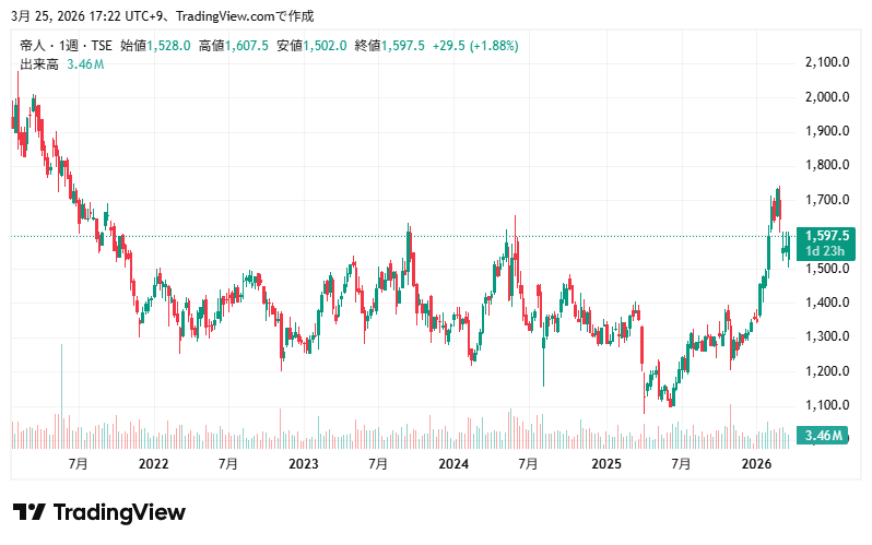 帝人の株価情報と配当状況・株主優待制度を確認していきます。